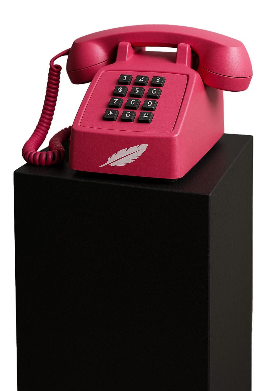 A few feet in front of him, placed neatly on a black plinth, sat a pink telephone.