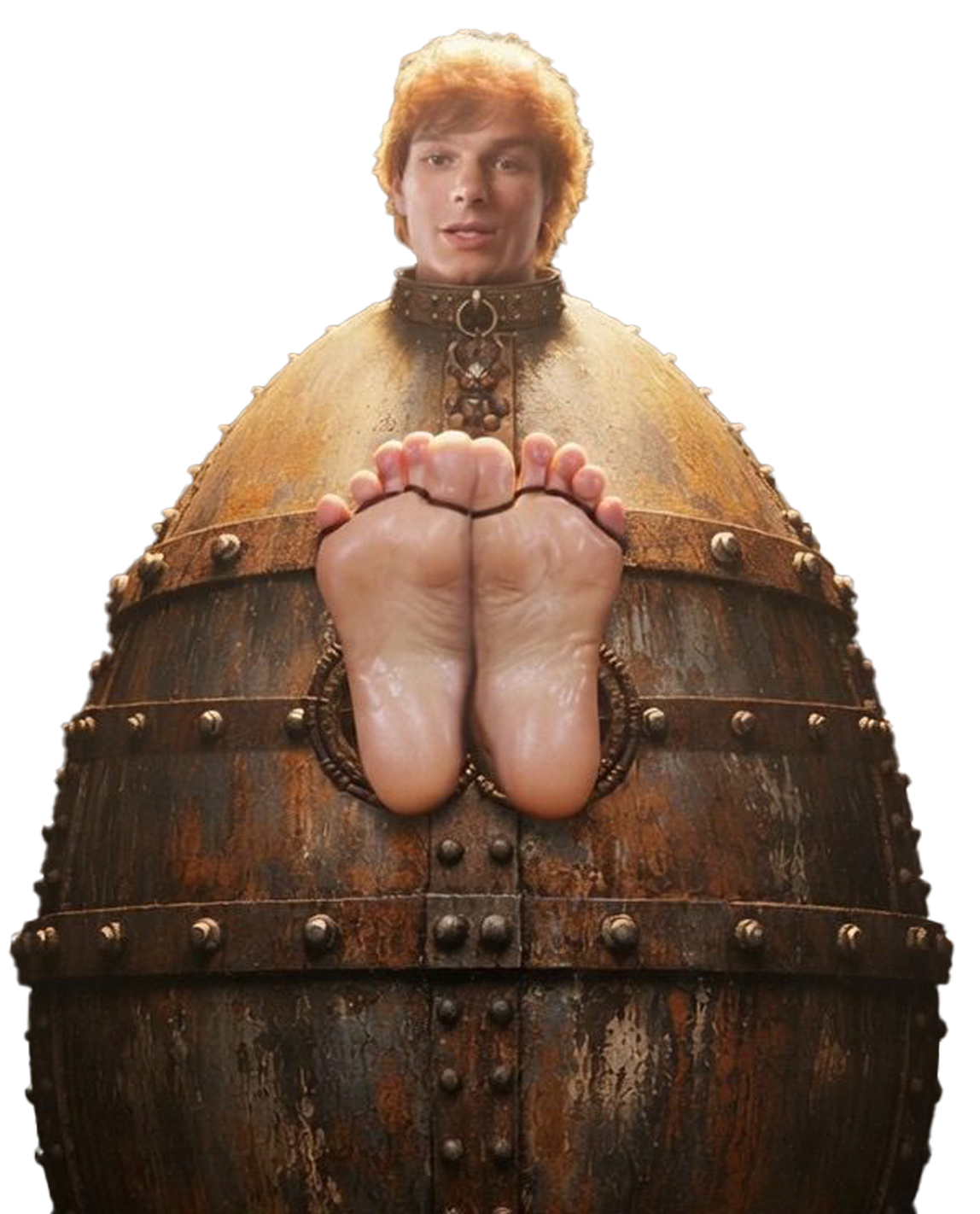 Outside of the egg, Mason’s bound feet were in absolute chaos. His toes strained desperately against the tight white strings, flexing and curling with all their might, trying to pull away, to scrunch, to do anything to escape the merciless bristles. The strings held firm, only allowing the tiniest, most pathetic twitches — the tendons in his soles standing out sharply, the soft, flawless skin stretching and quivering under the constant attack. The steel egg rocked and rattled even harder now, the heavy base scraping against the concrete beneath the plastic sheeting with loud, metallic scrapes.